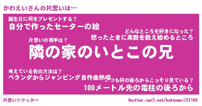 | 2回繰り返すあだ名 | 『かわかわ』『かかわわ』『おたおた』 |
