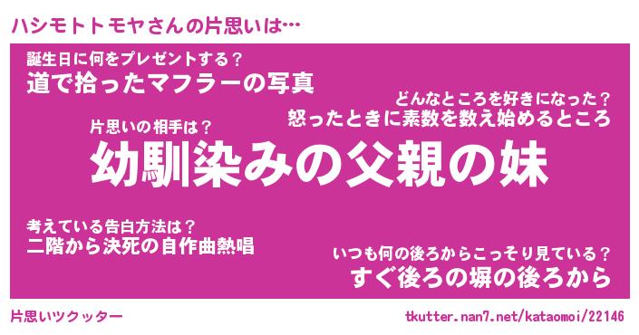 | 男性向けラノベタイトル風あだ名 | 『ハシモトトモヤの憂鬱』 |
