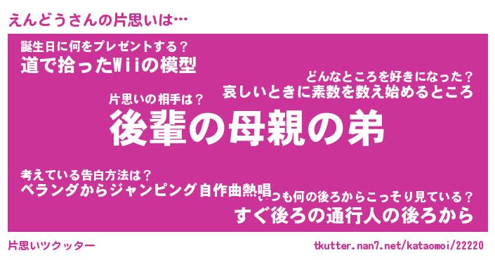 | ヘコむあだ名 | 『えんにー』『豆乳』『えんっちょ』 |