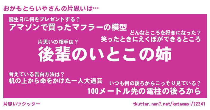 | ヘコむあだ名 | 『おかもー』『酢こんぶ』『おかを』 |