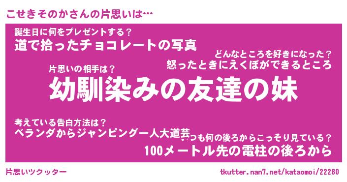 | 胡散臭い通販商品みたいなあだ名 | 『必ず成功する霊験あらたかなお札…その名も「こせきそのか」』 |