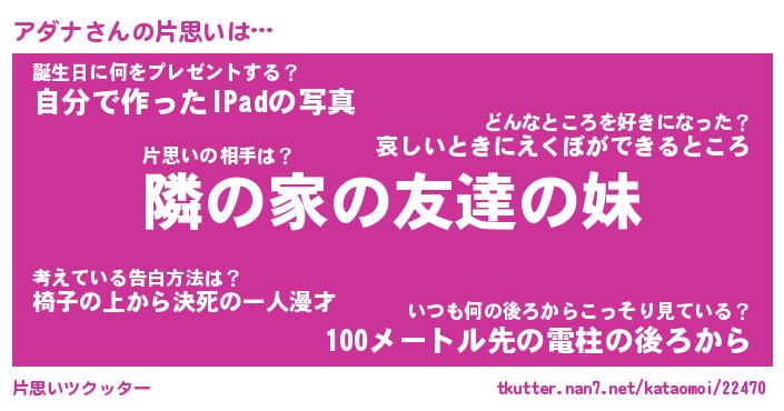 | 意味不明あだ名 | 『ペロリンアダナ』『アダナフォーエバー』 |