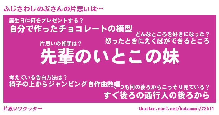 | ヘコむあだ名 | 『ふじもー』『つくし』『ふじを』 |