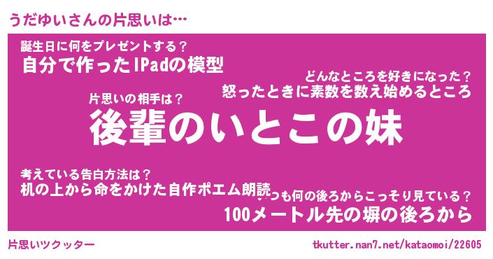 | 意味不明あだ名 | 『ペロリンうだゆい』『永久保存うだゆい』 |
