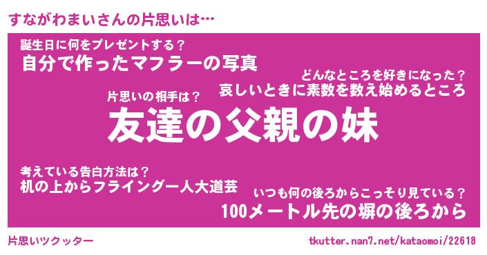 | 胡散臭い通販商品みたいなあだ名 | 『億万長者になれる水晶球…その名も「すながわまい」』 |