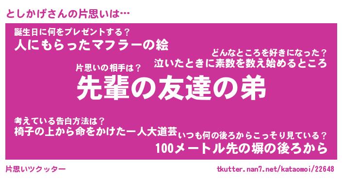 | 意味不明あだ名 | 『ペロリンとしかげ』『永久保存としかげ』 |