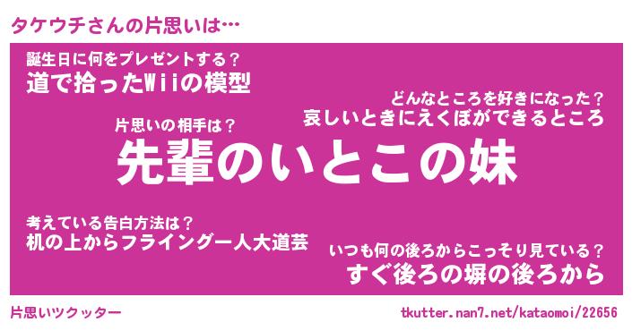 | ヘコむあだ名 | 『タケもー』『牛乳』『タケを』 |