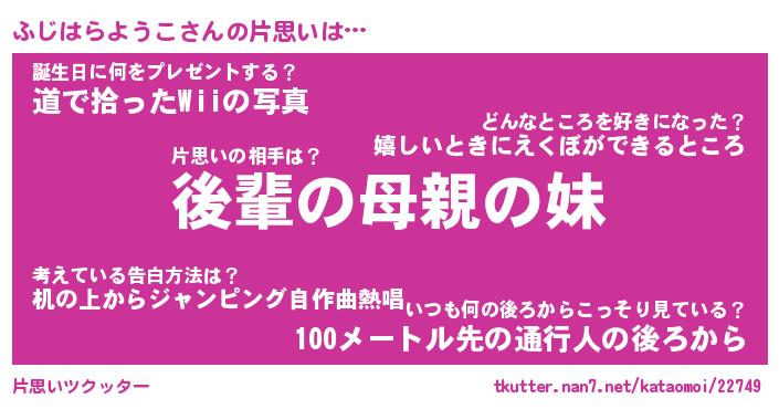 | ヘコむあだ名 | 『ふじにー』『豆乳』『ふじお』 |