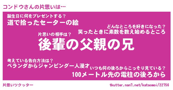 | 肩書あだ名 | 『コンドウ店長』『コンドウ総理大臣』 |