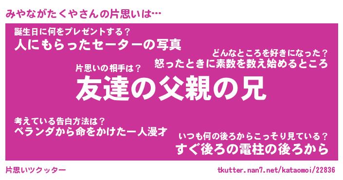 | 胡散臭い通販商品みたいなあだ名 | 『億万長者になれる水晶球…その名も「みやながたくや」』 |