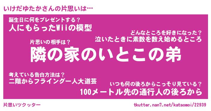 | 男性向けラノベタイトル風あだ名 | 『いけだゆたかの憂鬱』 |