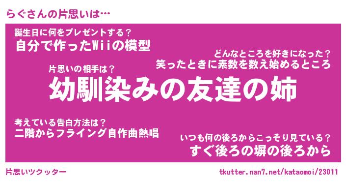 | ヘコむあだ名 | 『らぐもー』『牛乳』『らぐっ子』 |