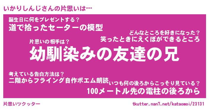 | 胡散臭い通販商品みたいなあだ名 | 『必ず成功する霊験あらたかなお札…その名も「いかりしんじ」』 |