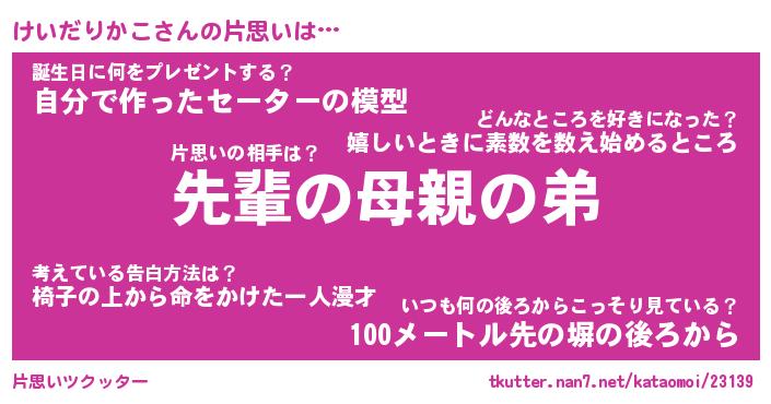 | ヘコむあだ名 | 『けいにー』『つくし』『けいっ子』 |
