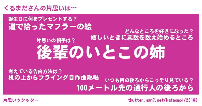 | ヘコむあだ名 | 『くるにゅー』『豆乳』『くるっちょ』 |