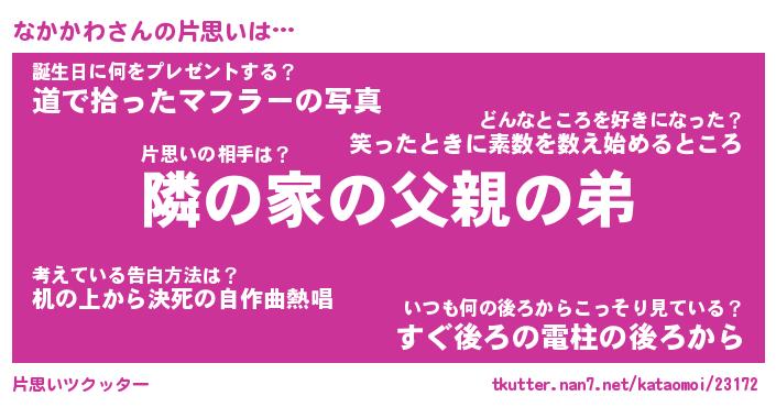 | 男性向けラノベタイトル風あだ名 | 『なかかわの憂鬱』 |