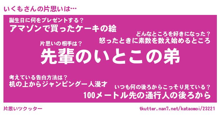 | 胡散臭い通販商品みたいなあだ名 | 『モテモテ間違いなし水晶球…その名も「いくも」』 |