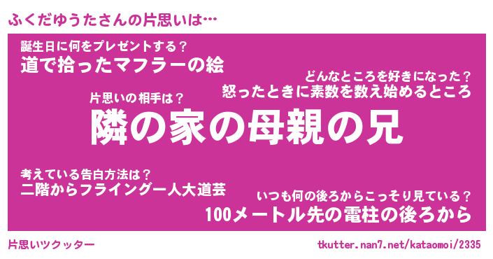 | 男性向けラノベタイトル風あだ名 | 『ふくだゆうたの憂鬱』 |
