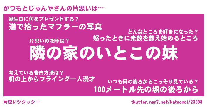 | ヘコむあだ名 | 『かつもー』『豆乳』『かつっ子』 |