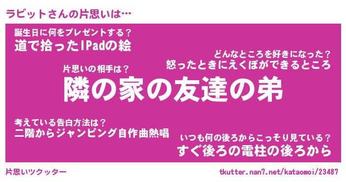 | 女子向けラノベタイトル風あだ名 | 『(仮)ラビットのやんごとなき事情』 |