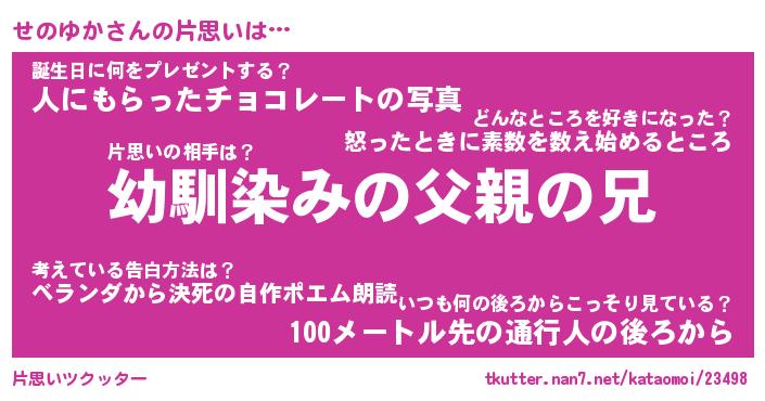 | 意味不明あだ名 | 『ペロリンせのゆか』『永久保存せのゆか』 |