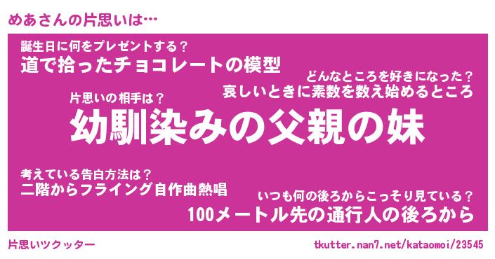 | ヘコむあだ名 | 『めあふぇ~』『なまこ酢』『めあを』 |