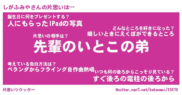 | ヘコむあだ名 | 『しがもー』『酢こんぶ』『しがを』 |