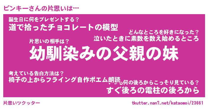 | ファンタジー風あだ名 | 『ピンフェル』『エターナルピンキーー』 |