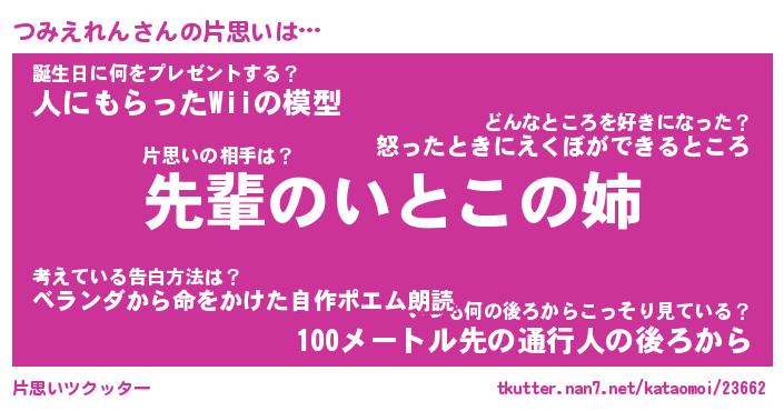 | 男性向けラノベタイトル風あだ名 | 『つみえれんの憂鬱』 |