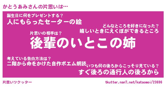 | ファンタジー風あだ名 | 『カトフェル』『エターナルカトウアミー』 |