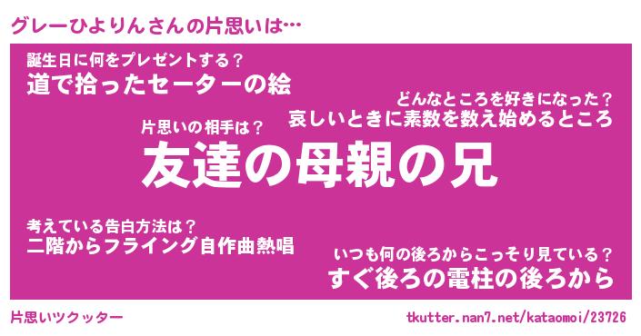 | 胡散臭い通販商品みたいなあだ名 | 『億万長者になれるブレスレット…その名も「グレーひよりん」』 |