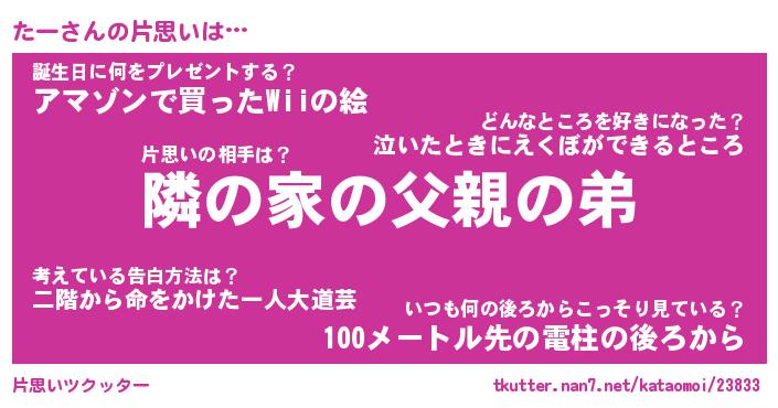 | 胡散臭い通販商品みたいなあだ名 | 『必ず成功するブレスレット…その名も「たー」』 |