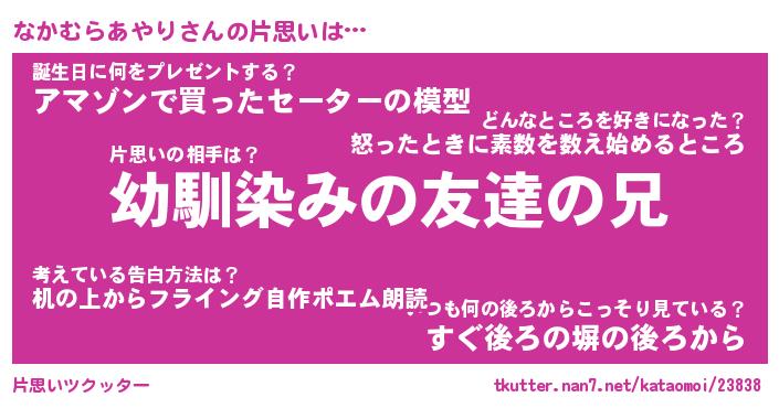 | 伝説のあだ名 | 『伝説のスナイパーなかむらあやり』 |