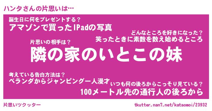 | 胡散臭い通販商品みたいなあだ名 | 『必ず成功する霊験あらたかなお札…その名も「ハンタ」』 |