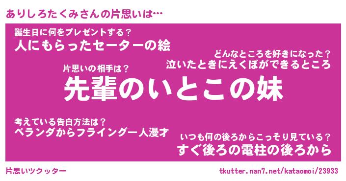 | 胡散臭い通販商品みたいなあだ名 | 『モテモテ間違いなし水晶球…その名も「ありしろたくみ」』 |