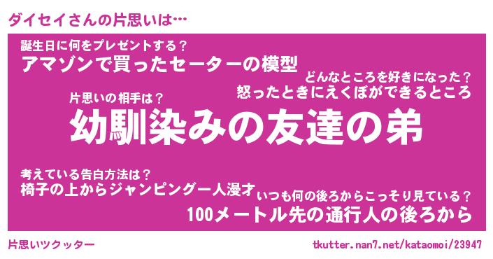| 男性向けラノベタイトル風あだ名 | 『ダイセイの憂鬱』 |