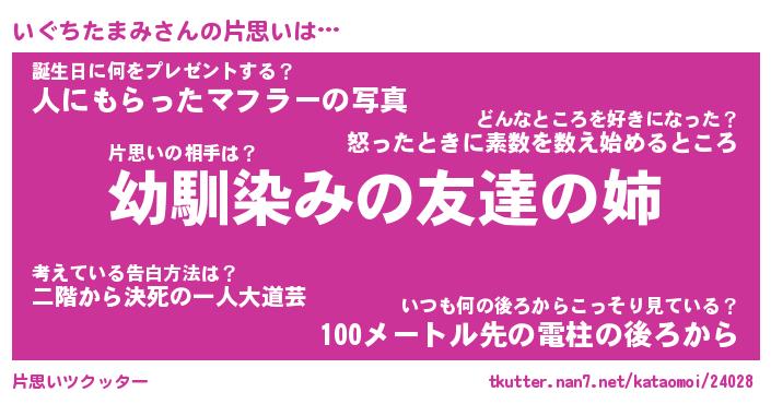 | 女子向けラノベタイトル風あだ名 | 『(仮)いぐちたまみのやんごとなき事情』 |