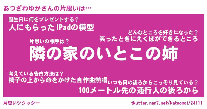 | 胡散臭い通販商品みたいなあだ名 | 『モテモテ間違いなし水晶球…その名も「あつざわゆか」』 |
