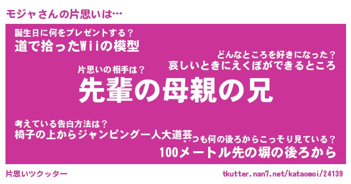 | ヘコむあだ名 | 『モジふぇ~』『つくし』『モジを』 |