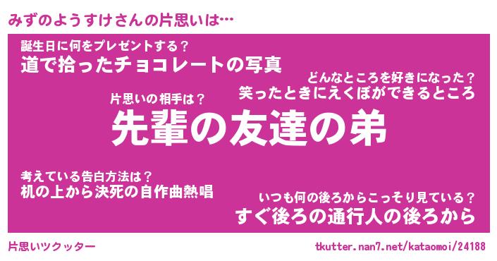 | ヘコむあだ名 | 『みずっふぃ~』『牛乳』『みずを』 |