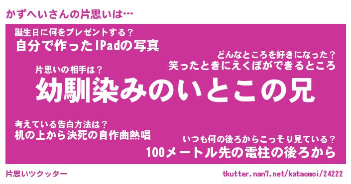 | 胡散臭い通販商品みたいなあだ名 | 『必ず成功する水晶球…その名も「かずへい」』 |