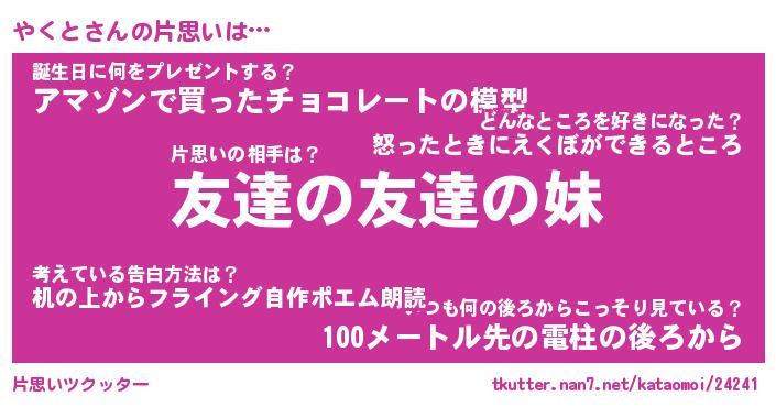 | 意味不明あだ名 | 『ペロリンやくと』『やくとフォーエバー』 |