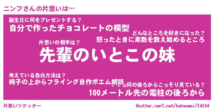 | ヘコむあだ名 | 『ニンにゅー』『つくし』『ニン太郎』 |