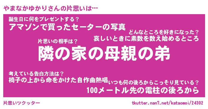 | 胡散臭い通販商品みたいなあだ名 | 『必ず成功するブレスレット…その名も「やまなかゆかり」』 |