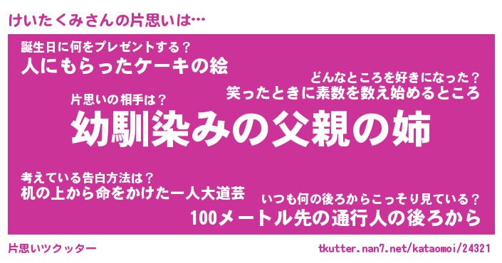 | 男性向けラノベタイトル風あだ名 | 『けいたくみの憂鬱』 |