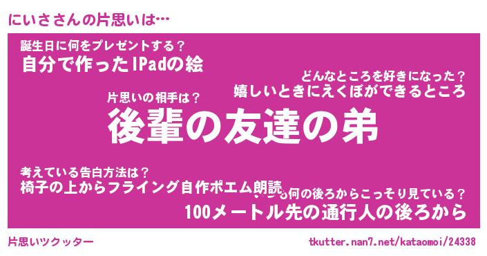 | 意味不明あだ名 | 『ペロリンにいさ』『にいさフォーエバー』 |