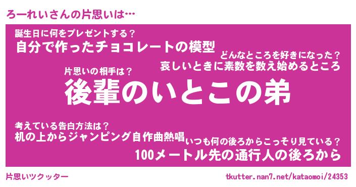 | 意味不明あだ名 | 『ペロリンろーれい』『永久保存ろーれい』 |