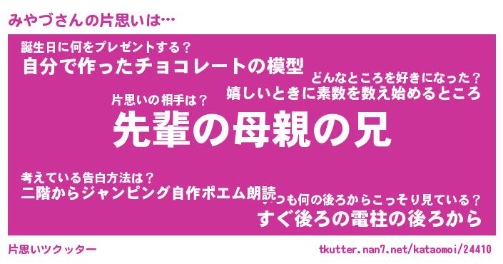 | ヘコむあだ名 | 『みやにー』『酢こんぶ』『みやっぺ』 |