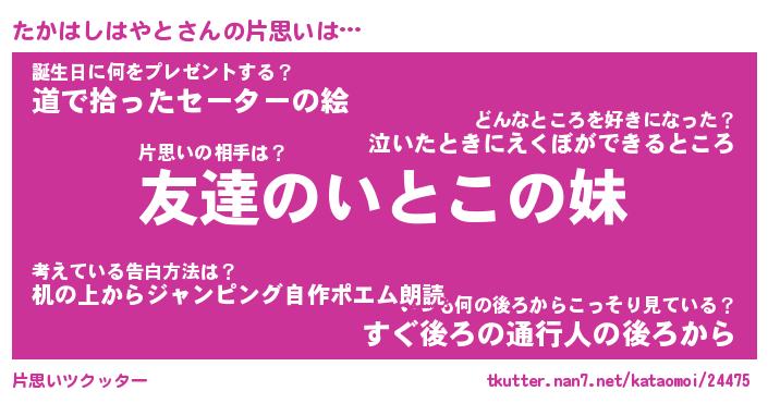 | ヘコむあだ名 | 『たかにゅー』『牛乳』『たかぷりん』 |