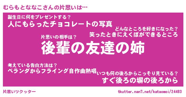 | 伝説のあだ名 | 『封印されしスナイパーむらもとななこ』 |